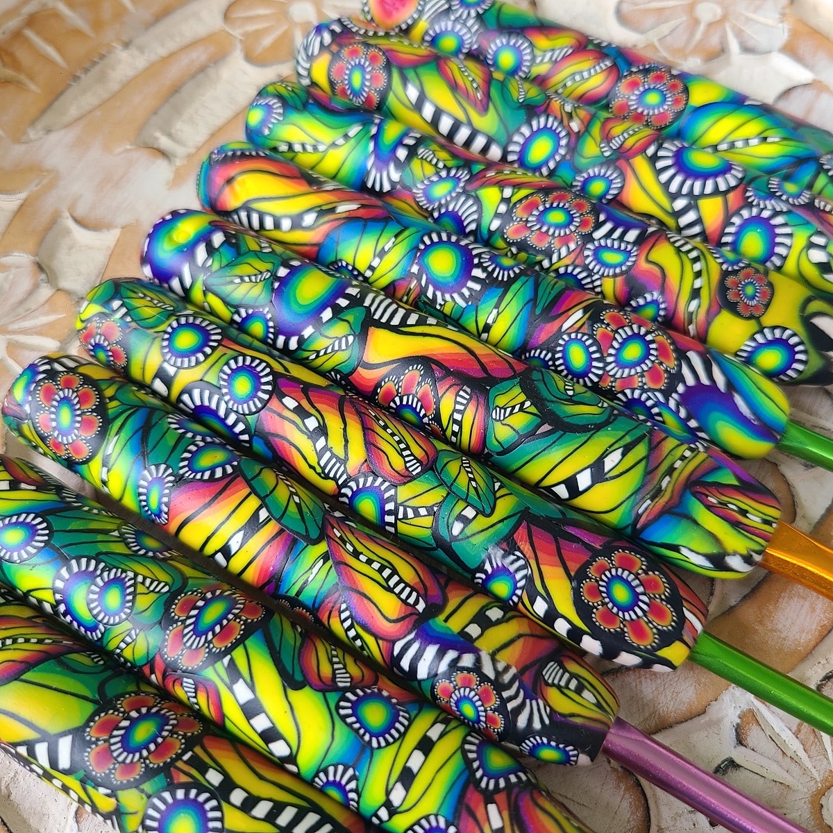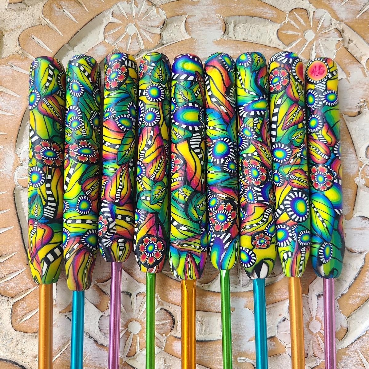 ***Handle shape, pattern arrangement and clay handle size will vary from hook to hook, these are completely handmade items. (Hook sizes are exact).