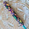 This technique creates vivid, multi size pieces that I am able to use as appliques onto many different surfaces. Here, I’ve applied them to the hook, creating a one of a kind gift, from start to finish. Also, since there is no paint involved, the colors will not fade, wear off or run. With continued use, the surface will patina into richer colors and a shinier surface as it absorbs the oils in your hands! This clay actually gets prettier with use.
